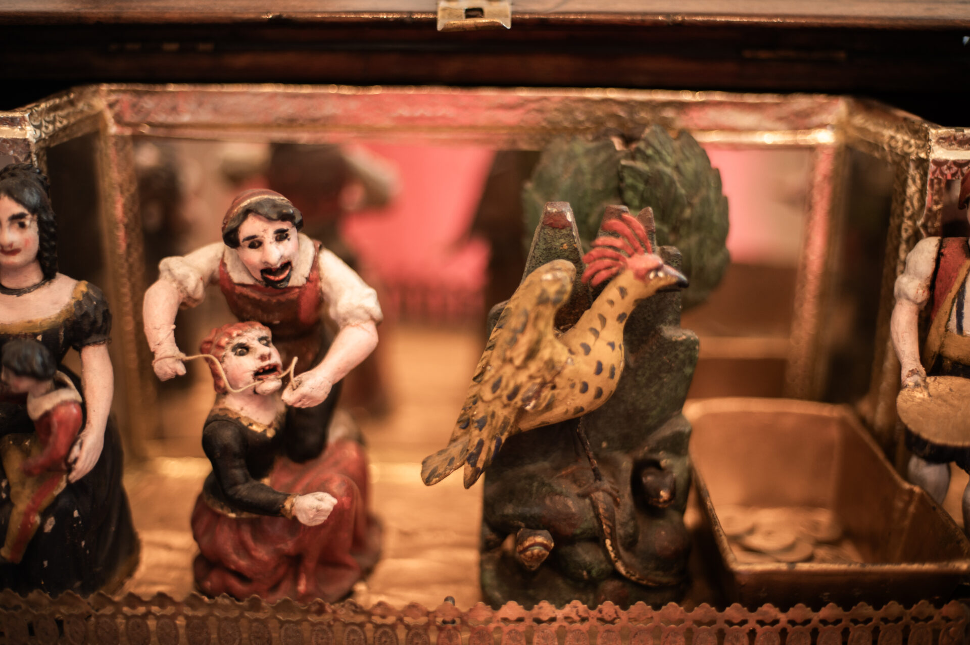Povabi nas naprej v muzej in nam predstavi glasbeno zgodovino, zaigra na razliÄne historiÄne in ljudske instrumente ter pokaže zbirko 350 glasbil z vsega sveta, ki jih hrani ustanova. Pokaže nam Å”e botaniÄni vrt in kavarno.